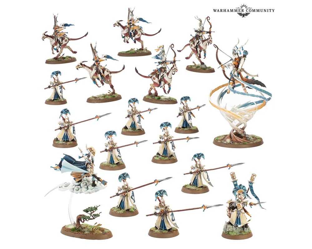 この素早く恐るべき部隊の中核を成すのは「フラカン・スピリット・オヴ・ウィンド」とその護衛兵「フラカン・ウィンドチャージャー」だ。機敏性に優れ、怒りに満ちたこの軍勢に加えて、「オーララン・ウォーデン」10体と「フラカン・ウィンドメイジ」1体もこのボックスに同梱されているため、槍衾(やりぶすま)を形成し防御を固めながら雲の間から放たれる強力な魔術の攻撃で敵を圧倒することができるだろう。