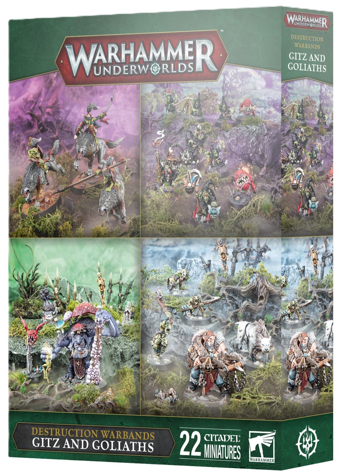このセットには、破壊をテーマとしたウォーバンド4種を収録。すべてのミニチュアはプッシュフィット式で、彩色プラスチック成形&情景ベース付き。組み立ても容易で、すぐにプレイ可能です。各ウォーバンドのファイターカードとウォースクロールカードも同梱されています。