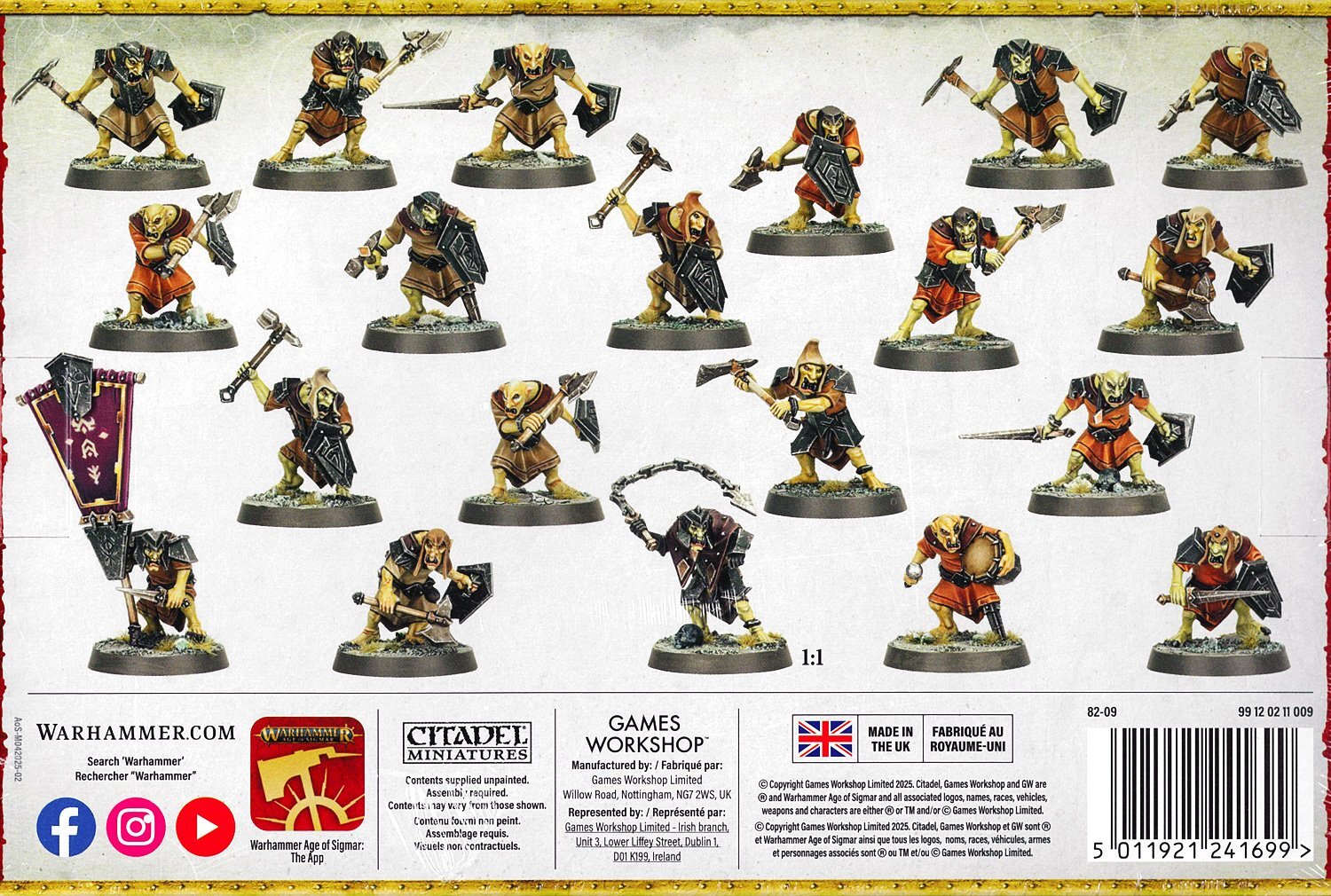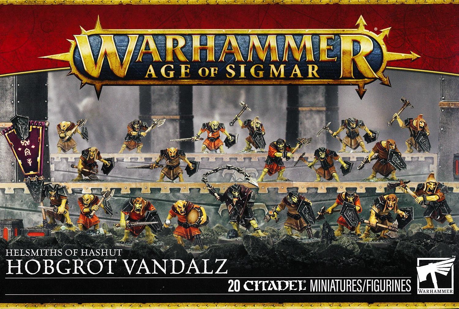 このマルチパーツ・プラスチックキットでは、『ウォーハンマー:エイジ・オヴ・シグマー』においてヘルスミス・オヴ・ハシュット軍に従う軽歩兵ユニットホブグロット・ヴァンダル20体を組み立てることができます。