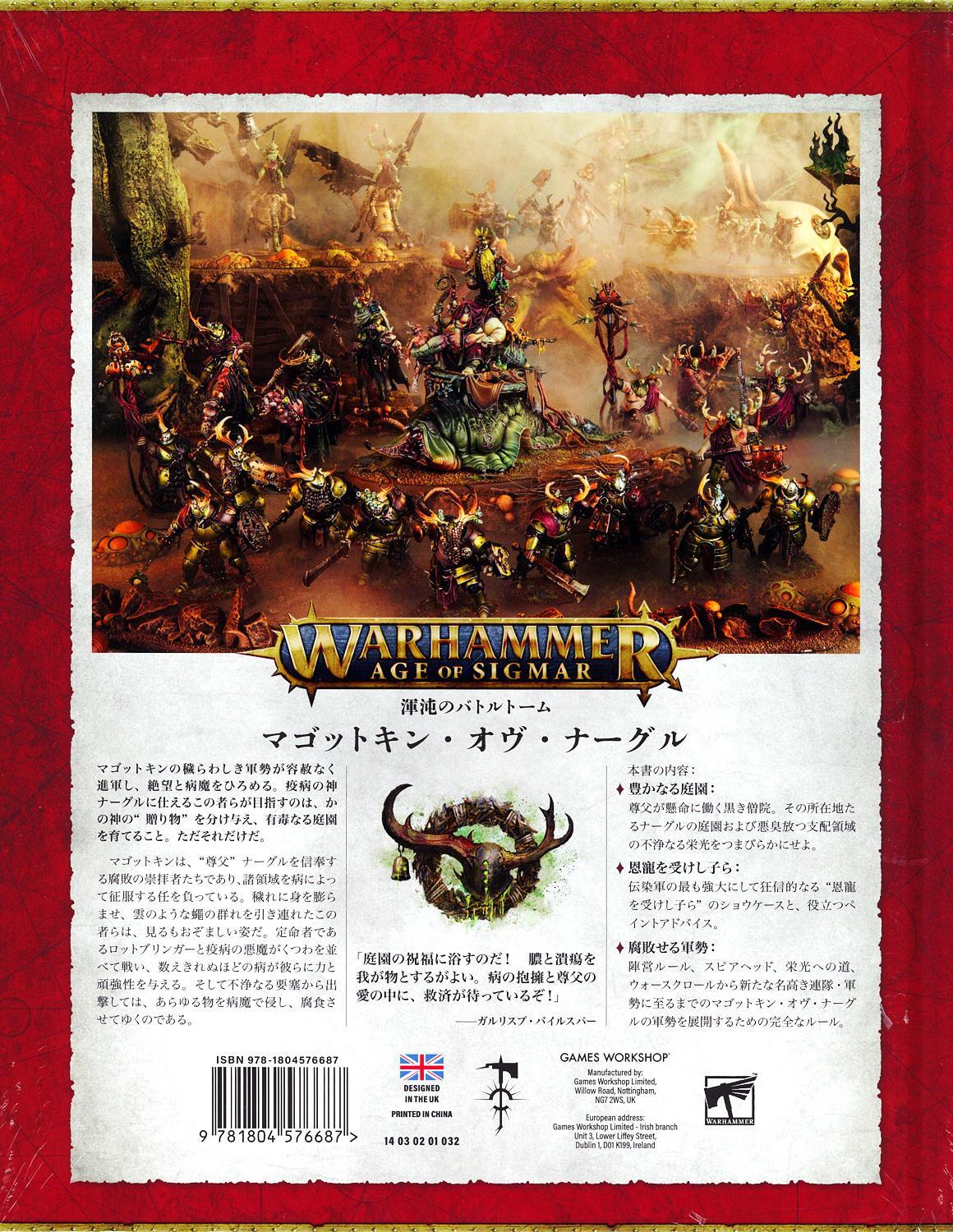 本書には、Warhammer Age of Sigmar: The Appで 「バトルトーム:マゴットキン・オヴ・ナーグル」の内容をアンロックできる 1回限り使用可能なコードが付属しています。