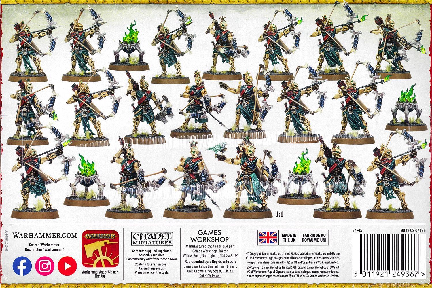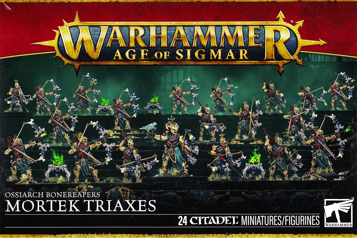 このキットからは、モーテク・トライアクス20体と霊炎の火鉢4個を組み立てることができる。