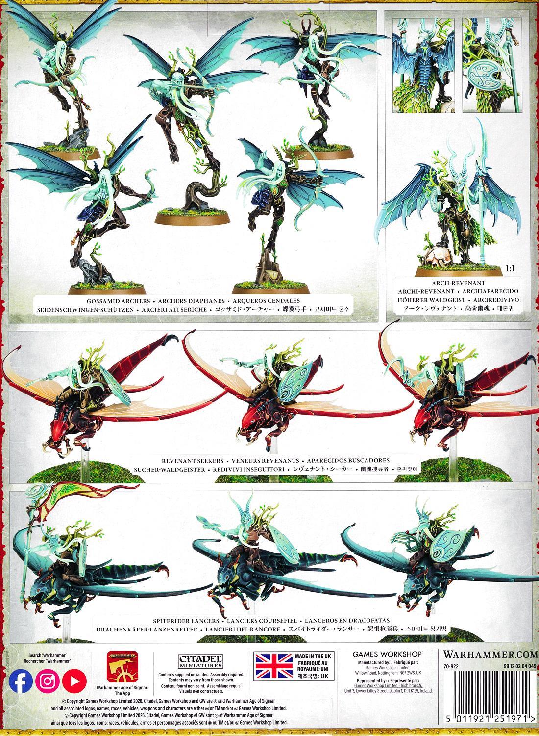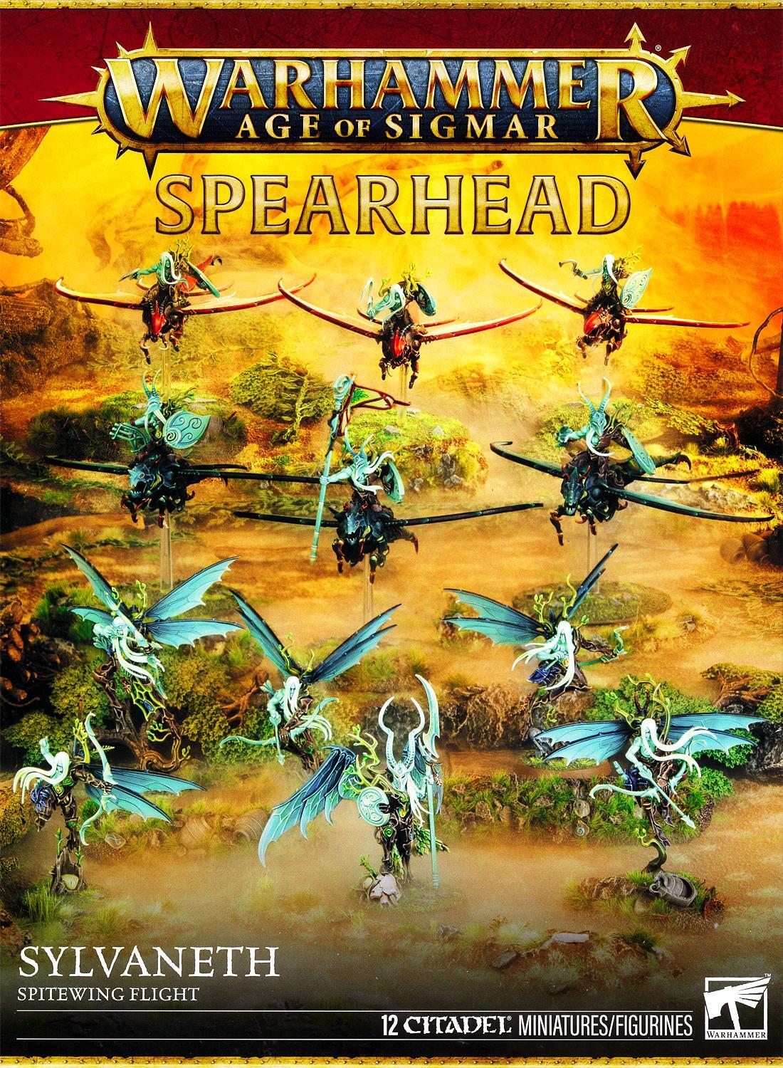 スパイトウィングの群れは、シルヴァネス軍の機動力を活かした戦い方をそのまま形にしたスピアヘッド用セットです。 素早く展開できる飛行戦力と射撃支援をまとめて揃えられるため、 スピアヘッド戦を始めたい場合にも、既存コレクションに高速戦力を追加したい場合にも導入しやすい内容になっています。 目標確保、側面攻撃、削りと追撃を組み合わせやすく、機動戦を重視したい方に向いたボックスです。